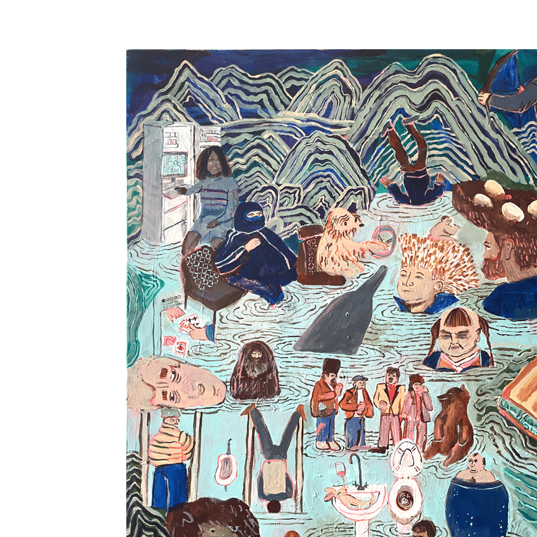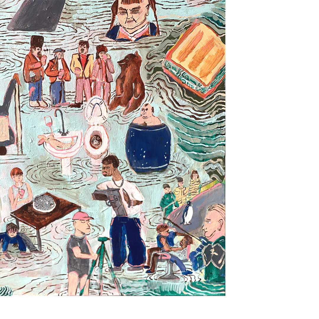 This work is inspired by A$AP Rocky’s music video “Tailor Swif”—a surreal, chaotic visual masterpiece. Shot in Ukraine just months before the Russian invasion, the video is brimming with eccentric characters and dreamlike sequences, each moment pulsing with life and energy. This video reminds me that life does not happen on a screen, it happens outside. In unexpected places, unfamiliar faces.